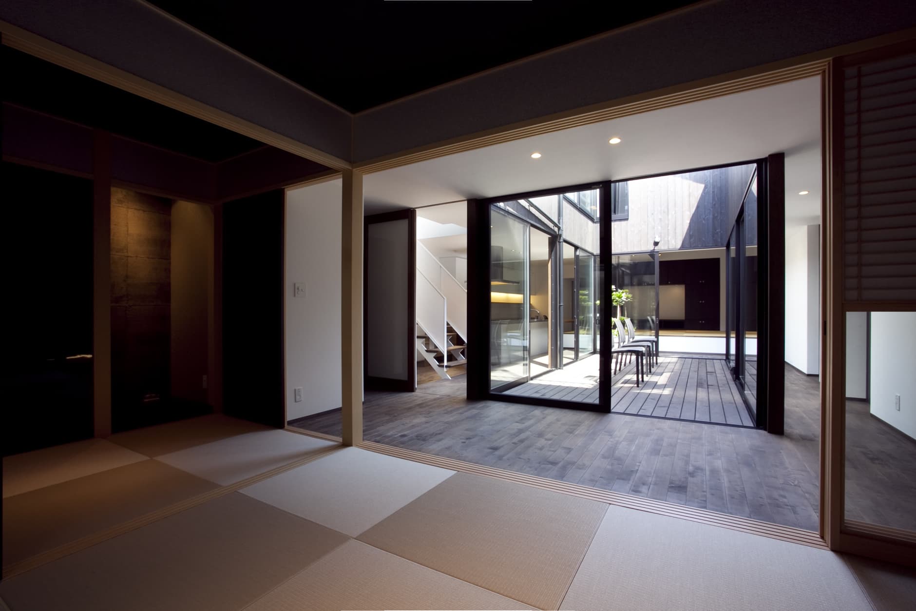 また、時間の流れによる家族構成の変化にも対応できるよう、壁による細かな部屋割りをせず、建具や家具によって個のスペースを確保しています。